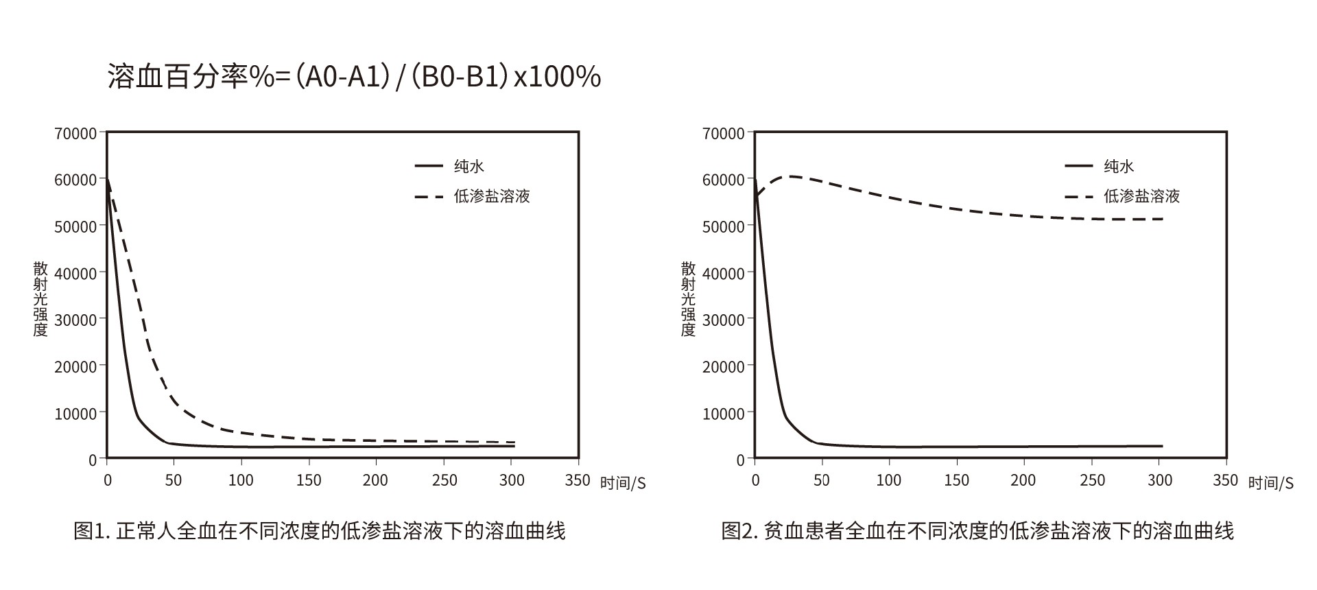 根据该原理,取两份等量的全血样本分别置于特定浓度的低渗盐溶液和纯水中,混匀